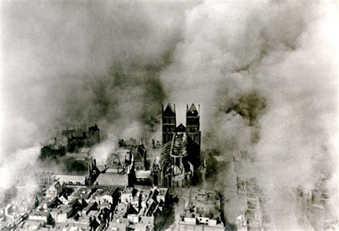 hebbt Bomben up uns' Stadt smeten. Wi seten in'n Keller, dicht bi de