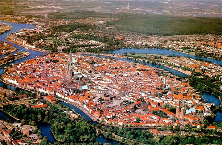 Lübeck ut de Luft. Klick op to'n Vergröttern!