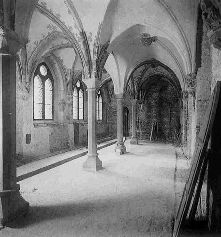 twee Kamine orrer Stellen to'n Kaken to sehn. Dorna kaamt wi in ene lütte Hall, dat weer dat Winterrefektorium.