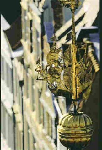 En Seilschipp is ok över den Ingang to sehn mit de Johrestall