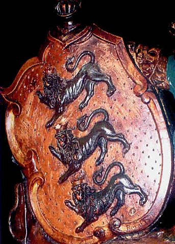 So en Platz heet "Gelage". An de Sieden sünd Wappen insneden,