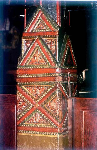 Twee stevig Stütten ut Holt dräägt de Deck ut dicke Balken.