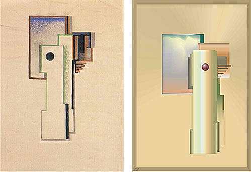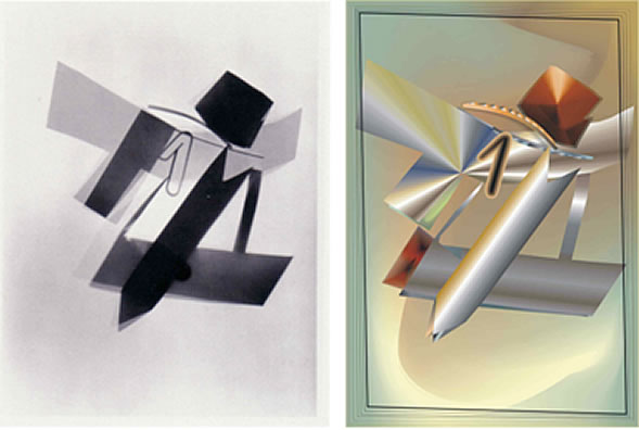 Photogram, 1929. Oginaal (linkerhand) un Digitaalbild (rechterhand) |