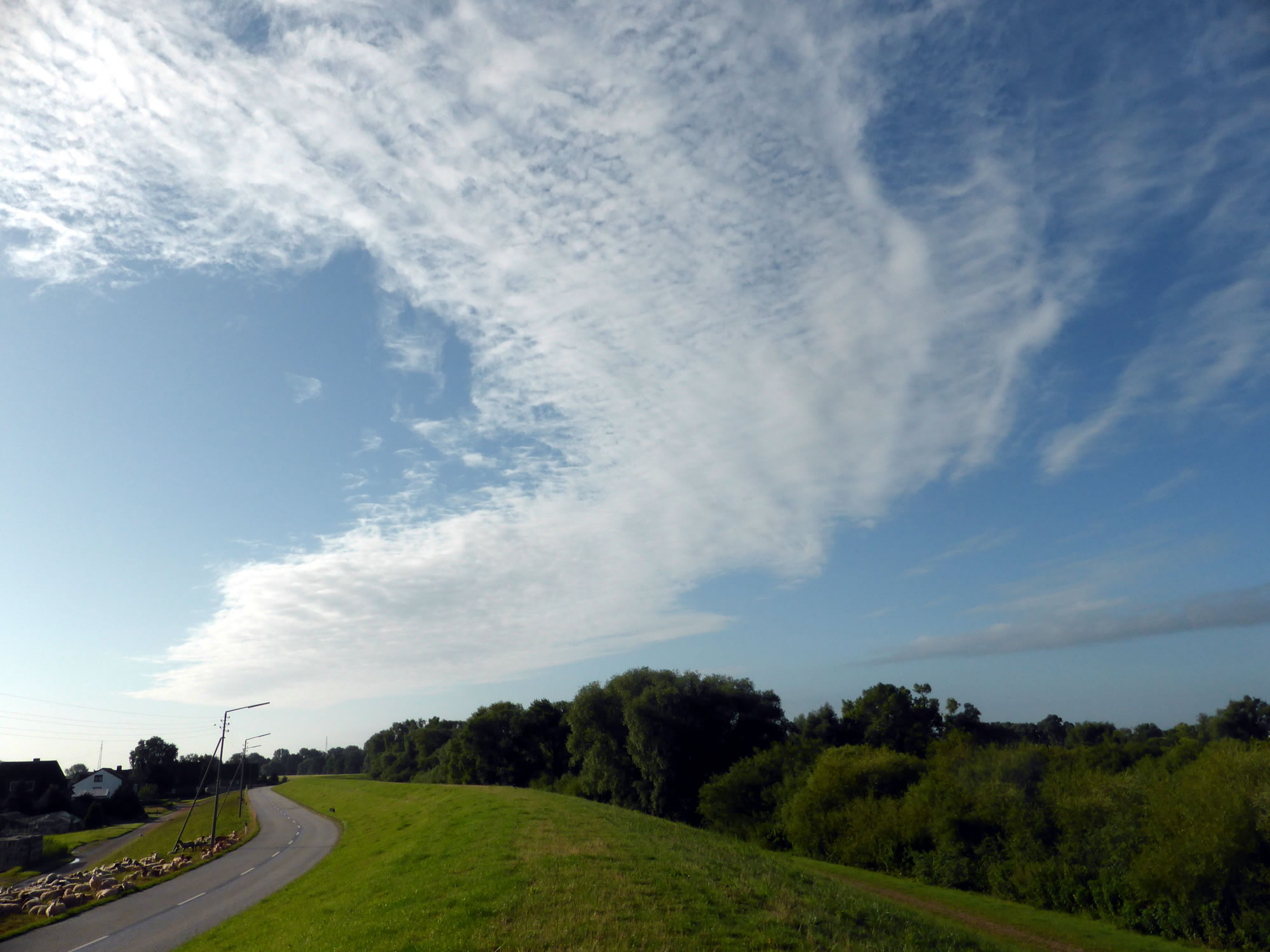 deep hangt de wulk, streng kiekt se dal klaar, püük un automatenliek dat wi de welt in säcke packt, de schaapsmannschap an sünnig stä, sühst du de groten wulken da? |