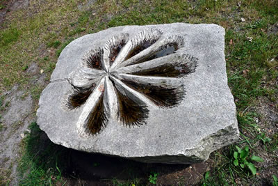 de grote Tehn ut Marmor vör dat Krankenhuus. De Skulptur weer vun