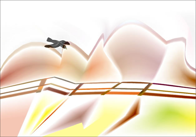 Ein Rabe fliegt, so schwarz und scharf,