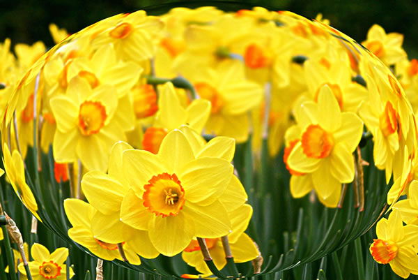 a crowd, A host, of golden daffodils; Beside the lake, beneath the trees,