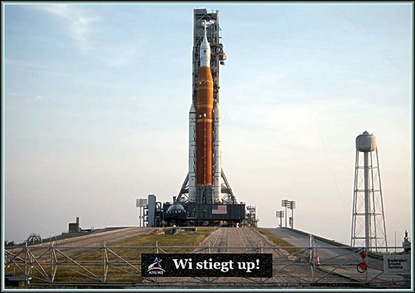 Dei Meteorologen an dat Ruum-Start-Delta 45 säggt mit 70% ein günstiget Start-Weer an'n 29. August 2022 vörut. Dei Weer-Vörschriften för den Artemis-I-Fleigtest van dei NASA wiest dei passen Bedingungen för den Start van SLS un dat Orion-Ruumfohrtüg an. Dat Tweistünnen-Startfenster gaiht aopen an'n Maandag, 29. August, üm 14:33 Uhr. Dei Klock tickt! Wi käönt Maandag live dorbiween! Dat NASA-Fernseihn berichtet live in dei NASA-Apps un up dei Website: NASA Live un ok in't apentlich-rechtliche Kiekschapp: Maondag, aff 12:00 Uhr äöwerdrägg dei Sender Phönix den Start van dei Maondrakete. Originaolartikel: NASA