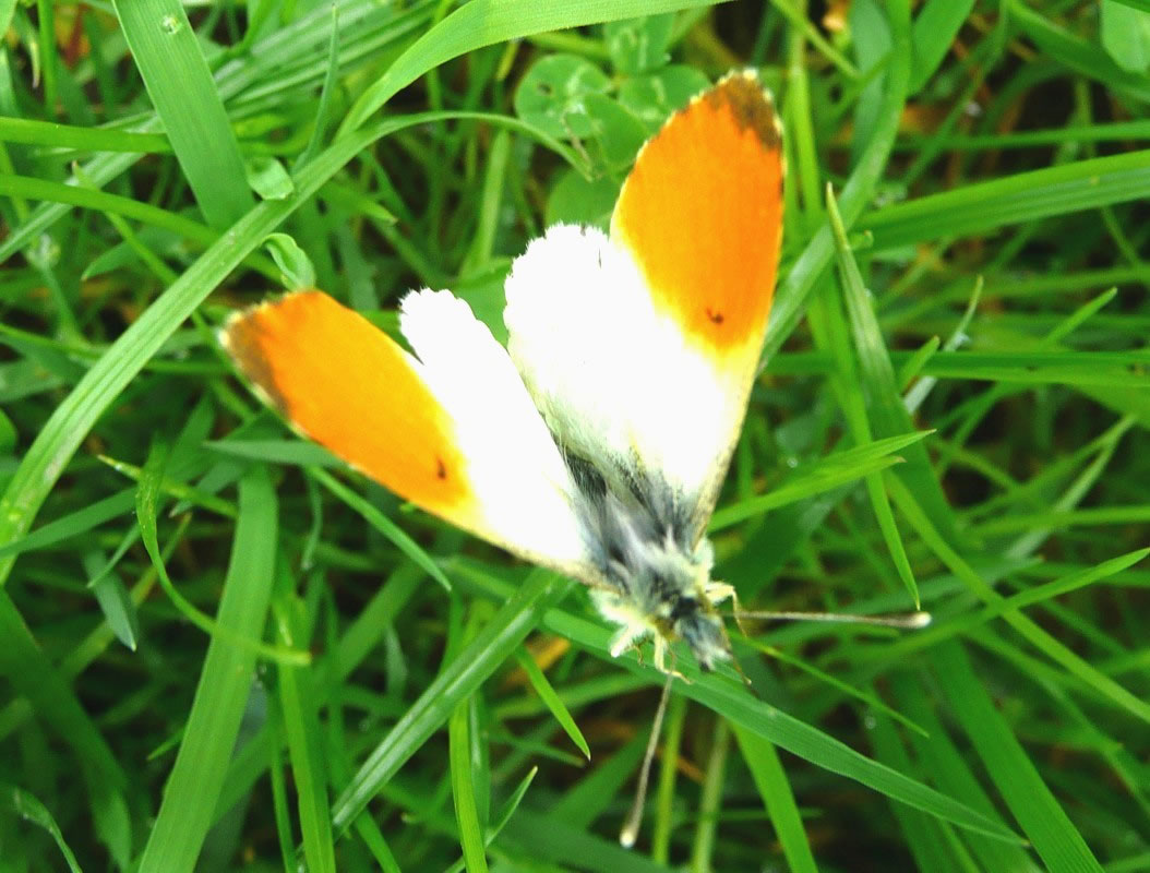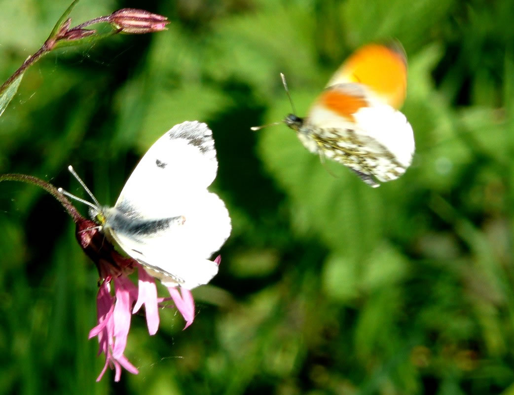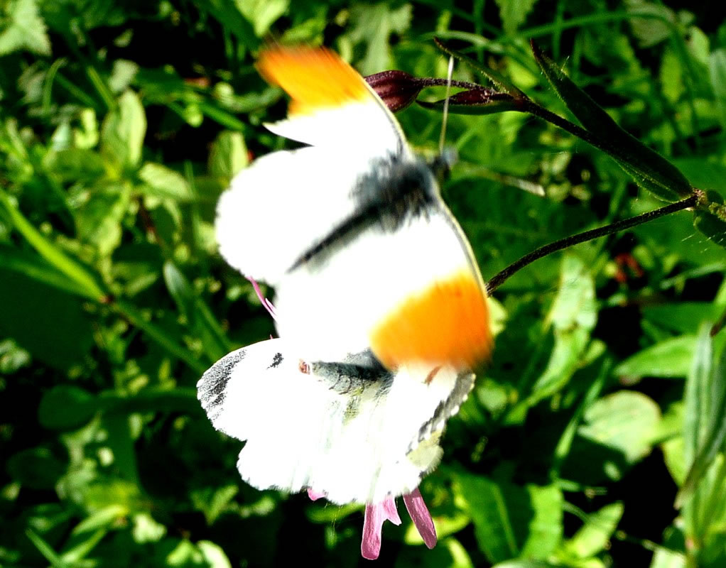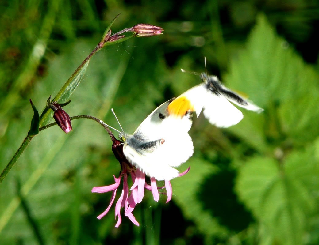 To'n Anhören hier klicken: Lesen deit Antje Heßler in Holsteener Platt. Dat gifft wohrhaftig enen Bottervagel mit den smucken Naam Aurorafalter. Aurora is de griechische Göttin vun dat Moornroot. Un düsse lütt Bottervagel gaukel al in den Aprilmaand dörch mien Goorn. He is een vun de eersten Bottervagels in't Johr. Mit sien witten un orangfarvig Flünken weer he nich to översehn. He bröch Farv mank dat fien Hellgröön vun de Planten. De orangfarvig Placken an't Enn vun sien Flünken lüchen mit de Fröhjohrssünn üm de Wett. Den Naam "Aurorafalter" harr he to recht kregen! Dorgegen is sien Fru mit en eenfach witt Kleed utstaffeert. Se warrt dorüm oftins mit den lütten Kohlweißling verwesselt. Blots bi tosamenklappt Flünken hebbt se beide dat glieke Utsehn. De Ünnersiet is mit griesgröön Placken överseit. So sünd se goot tarnt un up de Blomen un Planten kuum uttomaken. De Aurorafalter is en Bottervagel ut de Familie vun de Weißlinge. In't Johr 2004 is he vun'n Bund för Ümwelt un Natuurschuul to'n "Schmetterling des Jahres" utsöcht worrn. Dat heet aver to'n Glück nich, dat he bedrauht is! Nee, vun em un sien Aart gifft dat noch noog. Dat hett ok darmit to doon, dat he mit dröög Gelänn liekso good torechtkümmt as mit natte Wischen un sogoor mit Woold. He is en Allrounder. In de eersten Daag vun den Aprilmaand krüppt he ut de Popp. Denn kann man den smucken Bottervagel al bi't Söken na en Fru andrapen. Unruhig flüggt he vun Blööt to Blööt.