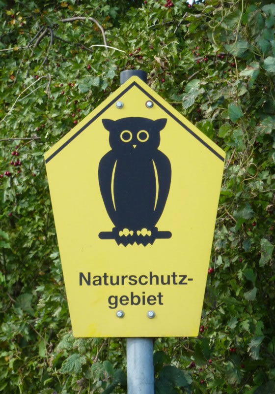 En Schild an den Wegrand leet uns weten, dat wi uns in en Naturschutzgebiet