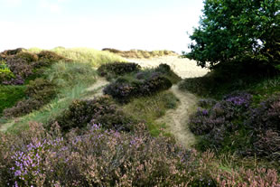 wiede Heide- un Dünenlandschop ut. De lila roden