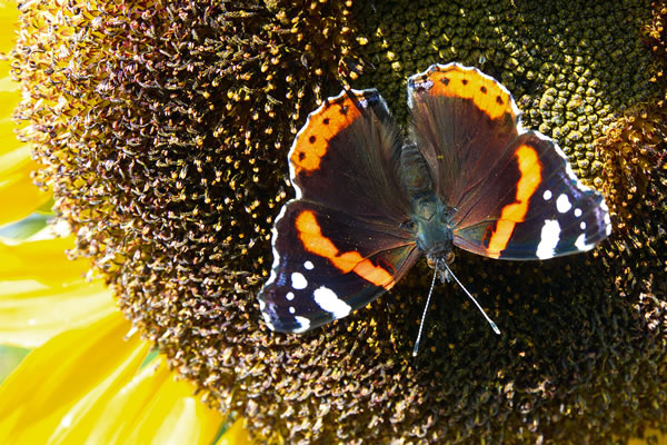 Bottervageljohr 2018 In de verleden Johrn sünd uns flegen Insekten gewaltig trüchgahn. Dorüm hebbt wi düt Johr en Kalenner uns Bottervagels toegnet. Thomas Seemann hett för en Fotokalenner (rutbröcht vun sien Team "Tandem"/OBW) de schöönsten Bottervagelfotos tohoopstellt. Wi bringt de Fotos hier, stellt de Bottervagels vör un ehrt ehr mit en Vers. Se köönt de Fotos per Klick vergröttern. Trüch kaamt Se denn mit den Zurück-Knoop op de Browser-Symboolliest. Bottervagel vun'n Septembermaand: vun Thomas Seemann un Marlou Lessing De Admiraal is en Eddelfalter vun strenge Schöönheit. Wenige reine Farven tekent in klore Linien sien dunkle Flünken. Se erinnert an de Schulterklappen vun't Militär, dor hett de Bottervagel sien Naam her. De Ünnersiet vun de Flünken is wedder ganz unschienbor, as bi dat Dagpfauenoog; so kann de Bottervagel twee Gesichter wiesen, een opfällig un een unopfällig. He un Se seht meist liek ut.
