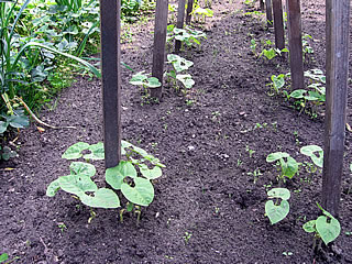 Gegenöver vun de Arven hett mien leve Mann Bohnen plant, ok dor hett he en poor Bohnen utriepen loten un denn dröögt, nau as de Arven. In Mai hett he so an de dree Zentimeter en Krink trocken un hett acht bit teihn Bohnen inleggt.