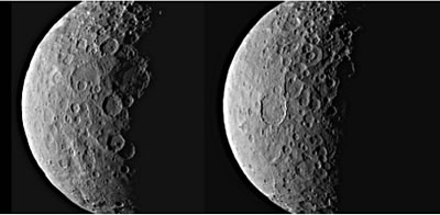 Tüschkendör hätt sei noch den Asteroid Vesta ünnersöcht. Dawn is dei eierste Sonde, dei forts üm twei extraoterristischke Objekte fleigen kunn. Dat neieste Bild van Ceres mök Dawn an'n 01. März. Dor süht man den Miniplanet meist in'n Schadden. Up dei Ümloopbaohn flüg Dawn up dei Site van Ceres, dei bit Midde April van dei Sünne wegwieset. Wenn dat Ruumfohrtüg wedder ut den Planetschadden rutflügg werd et neie Biller nao use Eern funken. Dorbi kummp dei Sonde up eine Spiraolbaohn immer duuner an den Planet ran. Dei Upbau van dei Dawn-Sonde Bild-Plaoten Kamera (Framing Camera [FC])