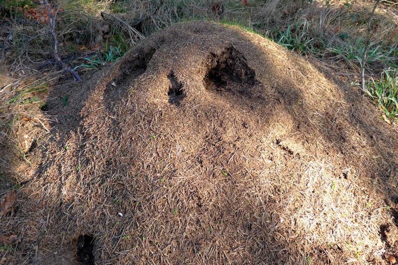 De halve Februar weer al vörbi! Endlich geev dat mal en Dag Sünnenschien. Verleden Johr in'n Februar harrn wi al mehr Daag godes Weder mit warmen Sünnenschien. Dor weern wi mit Auto ünnerwegens. Wi föhrn in den Woold. De leeg an de ole Tramünner Landstraat. Vun't Auto weern wi enen Eemkenhügel vun de roden Wooldeemken wies woorn. Den müssen wi doch ünnersöken!