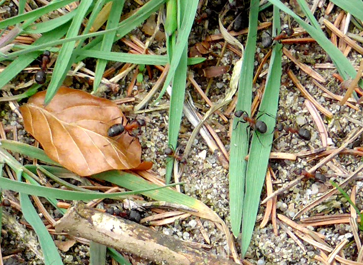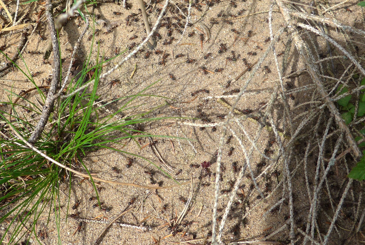 Al as ik in de Neegde vun den Hügel keem, wöör ik wies, dat veel Eemken up dat Ümfeld vun den Hügel rümlepen. Dor weer Hochbedreev! Ik müss uppassen, dat se nich an mien Been hochkrabbeln. Ümmer wedder weern welk an mien Büx. An den Hügel kunn ik utmaken, dat de Eemken all in een Richt lepen. Mit ehr'n Geruch, de Pheromone, harrn se ehr Kolleginnen anlockt. Dor weer en richtige Straat entstahn, en Eemkenstraat. Vörsichtig güng ik de Straat na. Dree Meter wieder weer anschienend dat Enn vun de Eemkenstraat. Dor drepen sik ganz veel Eemken. Dicht bienanner deelwies överenanner billen se enen richtigen Hupen. Dat sehg na enen niegen Eemkenhügel ut. Oder geev dat dor besünneres Foder? Dat de sik nich ümrennt!