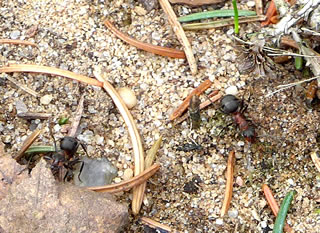 För den niegen Bu schaffen de Arbeiderinnen nieges Bumaterial ran. Dat weern in de Hauptsaak Dannennadeln. Ievrig krabbeln se hin un her. "Se weern flietig as en Ameis". Aver de Nadeln weern för de Eemken deelwies to groot un to swoor. Dor müssen noch welk helpen. Eemken sünd allerdings recht stevig un sleept oftins dat Veelfache vun ehr egen Gewicht. Ümrekent op den Minschen, köönt se ganze Autos, ja Laster in de Luft stemmen! Bi de Insekten gifft dat en ganze Gewichtheber-Liga, mit de de Wirbeldeerten nich mithollen köönt. Uns rode Woold-Eemk is ehrder noch Mittelfeld, aver welk Eemkenaarten sünd, tosamen mit bestimmte Spinnen un Milben, de stärksten Deerten op de Welt. Poor vun düsse Aarten köönt dat Dusendfache vun ehr egen Gewicht slepen! Denkt Se sik dat mal bi'n Minschen: En Schipp vun 80 bit 100 Tonnen eenfach mal so op de Schuller stemmen... Pippi Langstrump lett gröten! De Stärksten sünd even eenfach de Fruunslüüd. Eemken sünd ja ok allens Fruuns. Arbeit maakt aver ok Hunger. Welk vun de Eemken sorgen för Foder. Dode Käver un Würmer stünnen up den Spiesplan. De Melk vun Blattlüüs tellt to de Delikatessen in de Eemkenwelt. Dorför nehmen se enen wieden Weg in Koop. Se krabbeln an hoge Bööm na baven. Dor fünnen se Lüüs un de hebbt de Eemken mit ehr Föhler betrillert. Denn geven de Lüüs vun ehr Melk aff. De Saft vun de Boomrinn wöör vun de Eemken drunken. Hm, lecker! Is wirklich wohr: Dat Sekret vun de Blattlüüs hett en hogen Andeel an Zucker. Wenn Se Ehr Auto in'n Sommer ünner en Boom parkt, is dat an'n Avend kleevrig. Dat is de Blattluus-Saft! De Bööm sülven sünd dor ganz unschüllig an. Op den Zucker sünd de Eemken scharp. Verständlich, se köönt ja nich eenfach Schokolaad futtern.