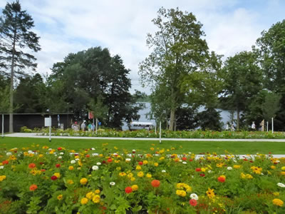 Lütt Passagierscheep fohrt dor ok rümmer, swemmen deit sowoso keeneen von de Minschen. De gahn al blots spazeern un kieken sik de Gegend un de scheunen Blomen an. To'n Baden weer dat ok to köhl, wat schaad! Ik weer süns wiss an levsten in'n See rinjumpt!