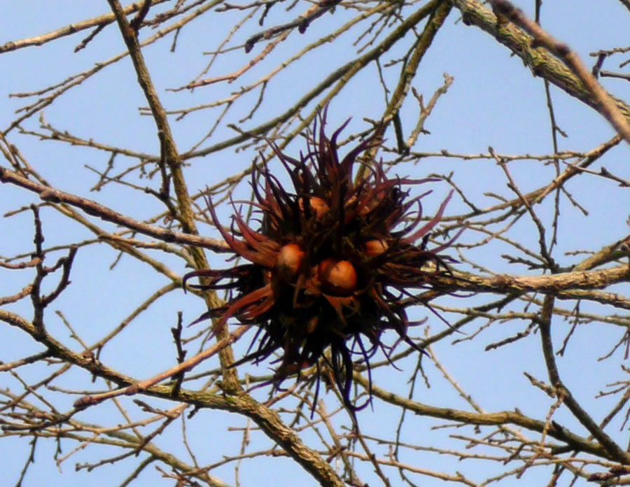 düsse Kugeln hüngen noch in den Boom. Dat weer also en Haselnuttboom!