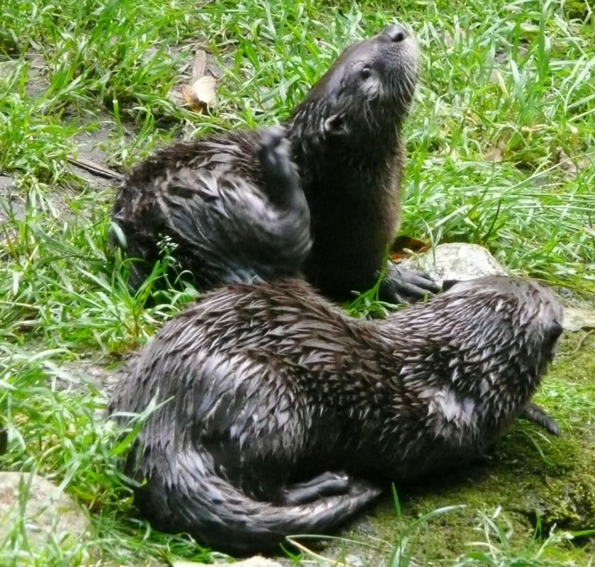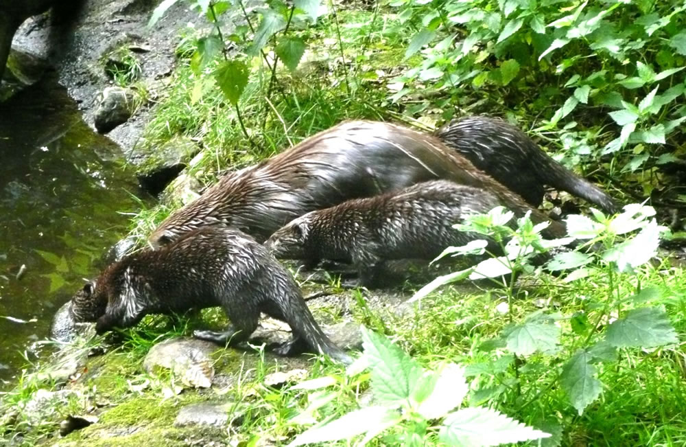 Otterngehege. Un dor jachtern de lütten drolligen Ottern ümmer
