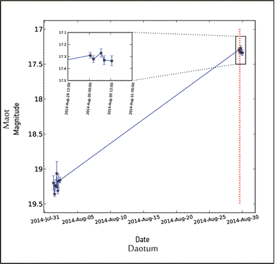 Dr. Hodgkin hört tau dei Gaia-Alarm-Mannschkup, dei van Astronomen van dei Universität van Cambridge (UK) un Warschau upstellt wörd un bi dei Scansichtungen nao besünnere Ännerungen seuken dait. Et duurde nich lange un dei fünnd an'n 30. August 2014 dei eierste "Anomalie" in dei Form van ein drocket Anstiegen bi dei Intensität van ein Lecht, dat ut eine ferne Galaxie kummp. As Gaia einen Monat vörher dei süftige Galaxie sehg, scheen dei noch nich so lecht. "Wi dachten forts, et kunn eine Supernova wän, aower man bruuket mehr Wiesteiken för ein fastet Resultaot", verklort Lukasz Wyrzykowski van dat Astronomischke Observatorium van dei Universität Warschau.