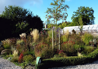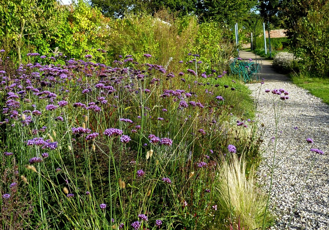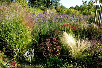 Stauden. Mank verscheden Ziergräser keken Astern, Fetthennen,