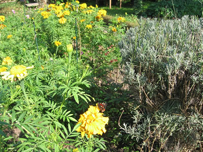 De Tagetes stünnen ok noch in al ehr Farvenpracht dor, mit Beduern heff ik se all rutreten, over dat weer mi noch sworer fullen, wenn se Frost kregen harrn, dat is jümmer en drurigen Anblick. Mien Mann harr se meuhsom in Fröhling optrocken, un ik harr se mit inplant. Bannig kohl süht nu uns groter Buerngoorn ut. De Appelbööm hebbt düt Johr in Fröhling twoor vele Bleuten hatt, over wenig Frücht ansett. De Winter weer lang un streng un de Sommer männichmool to hitt un dröög. De Immen sünd in Fröhjohr nich togang komen, männichen Immenstamm is dörch en Süük ingohn.