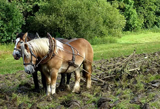 wies wöörn. He harr sien twee Peer vör den Ploog spannt,