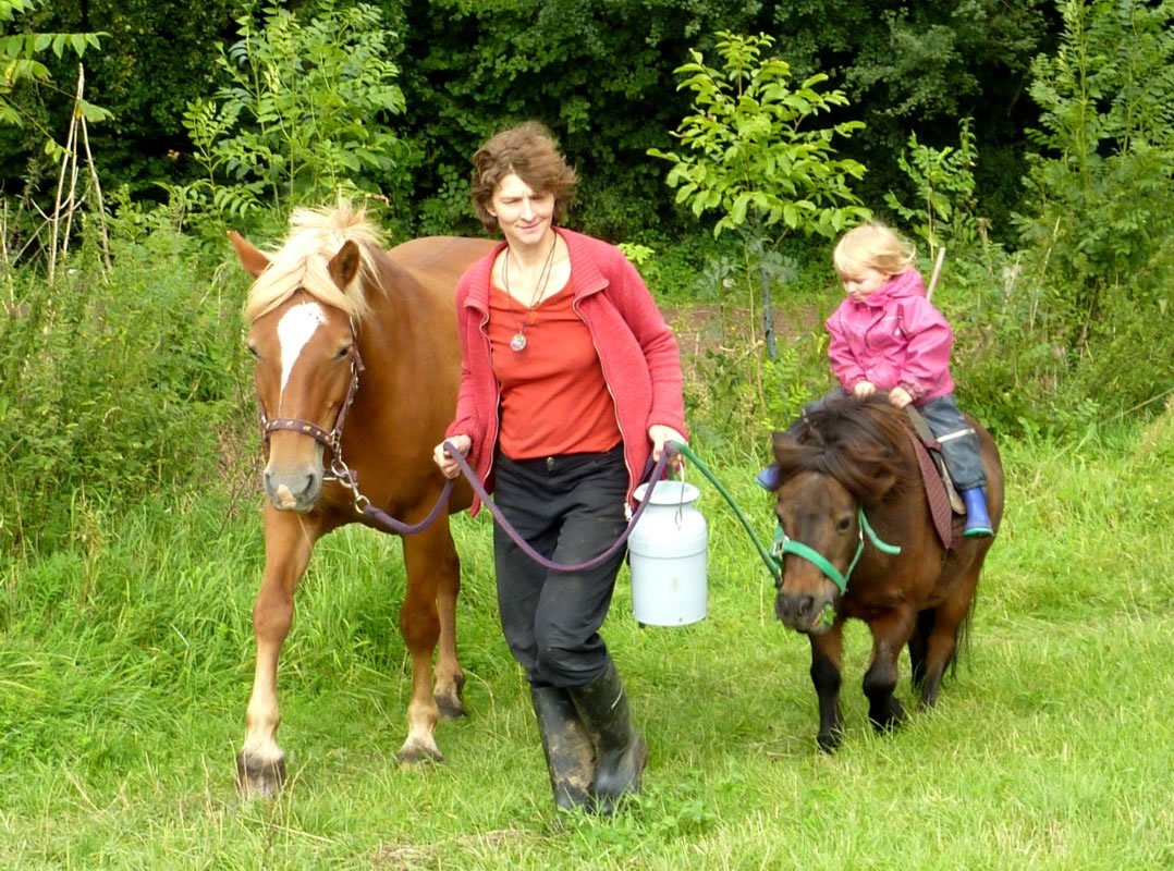 Dochter seet as so'n olen Rieder up en Pony. De korte Paus kunnen