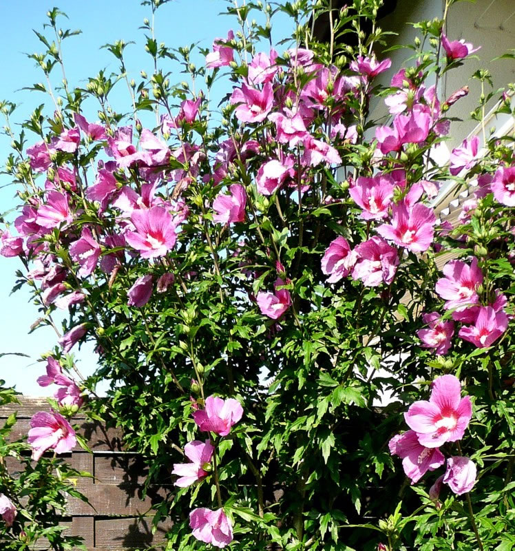 Torüch kaamt Se denn mit'n Zurück-Knoop vun den Browser. De Goornhibiskus hett vele Naams: Straucheibisch, Eibisch, Roseneibisch,