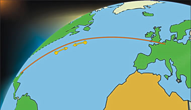 Dat is, as wenn sik äöver'n Atlantik twei upeinanner taufleigen Knoopnaodels draopen schäöllt.