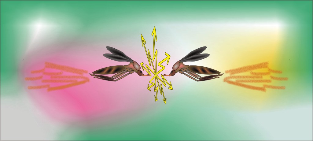 Dei bi dei Kollision van twei Protonen afgäben Energie ist för ehre Grötte weust groot in'n Vergliek mit use normaole woahrnaohmen Welt minne. Dat is as wenn twei Müggen bi't Fleigen tausaomestötet.