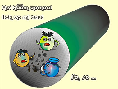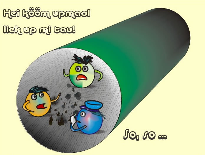 Protonen werd mit Lechttempo tausaomeschaoten. Ehre elementoaren Bestanddeile Quarks un Gluonen produzeiert Deilkes un Energie. Dorbie kaomet Temperaturen taustanne, so as in dei eiersten Billionstelsekunne nao den Urknall. Dat Beobachten van disse Prozesse in'n LHC is so ein Blick up einen Moment kort noa dat Entstaohn van dat Universum. Dat was vör 13,7 Milliarden Joahr.