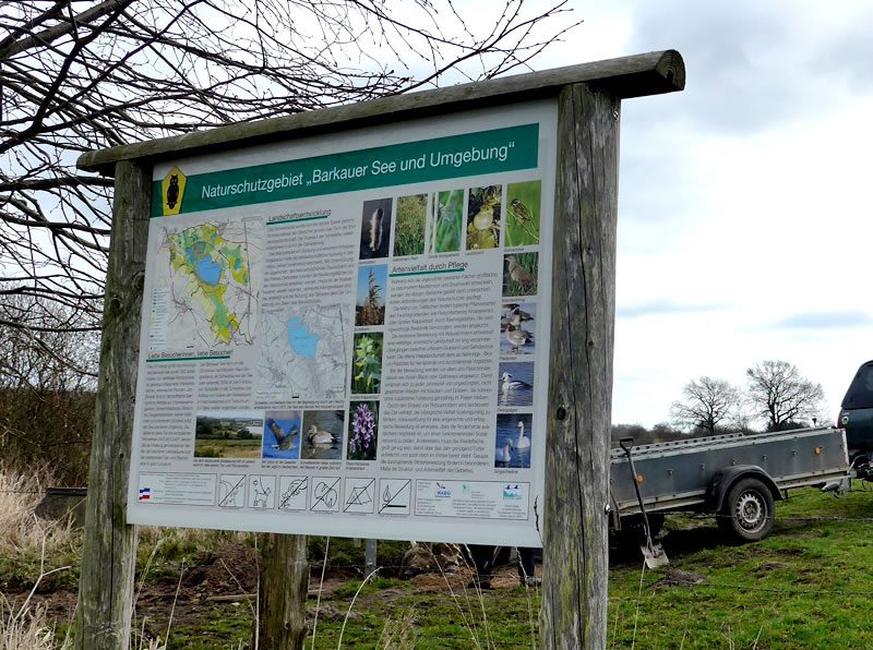 Ik harr mien leve Not, in dat Auto to klattern, de Instieg weer so hooch! De Fohrt güng över Wischen un Feldweg, egal ob matschig or fast. Se wies in't Feld: "Da unten ist der Lauf der Schwartau!" Un lütt Stück wieder weer en See, de Barkauer See to sehn. Up de Wisch vör de Au spazeern twee Kraniche. Noch wat wieder drepen wi Arbeider, de den Tuun repareern. Fröhlich reep uns Gastgeversche de Lüüd to, se sullen doch dat Gatter för se uplaten. Un wieder güng uns Fohrt. Wi kunnen uns gor nich satt sehn. De Fohrt över de Feller ümmer mit de Utsicht na de Schwartau ward wi seker nich vergeten.