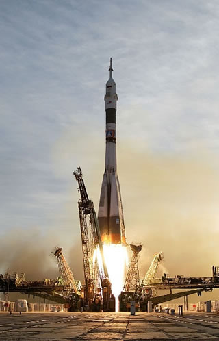 Dat Trio startet van dat Kosmodrom Baikonur in Kasachstan. Twei Daoge läöter kaomt dei bi dei Internationaole Ruumstation (ISS) an. Dormit gaiht et los mit dei "Mission Horizons". Nao 34 Eerdümrundungen kummp Alexander Gerst an'n 8. Juni üm 15:07 Uhr (MESZ) bi dei ISS an. Dei Sojus-Ruumsonde docket denn mit dat Rasswet-Modul an dei Station an. Dei Klappen gaiht nao twei Stünnen aopen un denn gaiht et mit dei Horizons-Mission los. Alexander Gerst is denn tau'n tweiden Maol in'n Weltruum. Hei schall uck dei tweide ESA-Astronaut wern mit dat Kommando äöwer dei ISS. Dat Horizons-Programm is vull mit europäischke Forschkung: Mehr at 50 Experimente schäöllt för dei Menschken up dei Eern Vördeile bringen un uck dei taukaomen Forschkung in den Weltruum up'n Padd bringen.