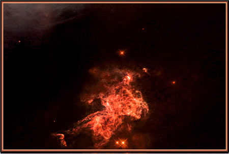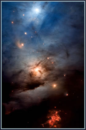 Neern in't Bild kann man dör ein Schläödellock kieken, deip in den düsern Näbel rin. Hubble fang dat rötlicke Lüchten van den ioniseierten Waoterstoff in. Et lätt at ein Füerwarkfinaole mit dörnanner fleigen Deile. Dat kummp van bleifedderdünne Jets, dei van nei entstaohn Sterne butsiet van den Sichtraohmen rutscheitet. Disse Sterne häbbt kringortige Schiewens üm sick, dei tauleßte Planetensysteme maoken käönt. Un sei häbbt starke Magnetfelder, dei twei parallele Straohlen ut heitet Gas deip in den Weltruum schickt, at ein dubbeltet Lechtschwert ut Science-Fiction-Filme. Sei formt Musters up dat Waoterstoff-Netwark, at Laser-Lechtshow-Spauern. Dei Jets künnigt eine Sterngeburt an. Disse Ansicht is ein Bispill för dei Tied, at use Sünne un Planeten vör 4,6 Milliarden Johre in so eine stuuwige Molekülwulke entstünnen. Use Sünne is nich allennig entstaohn, sei hüng in einen Chaos-Pott, vull mit entstaohn Sterne, dei vellicht noch mehr Energie un Materiaol har at NGC 1333. NASA-Astronauten bröchden Hubble an'n 25. April 1990 an Bord van Space Shuttle Discovery in den Erdümloop. Bit vandaoge hätt dit beneumte Teleskop bold 1,6 Millionen Biller van bold 52000 Himmelsobjekte maokt. Dit Wäten äöwer dat Universum werd öffentlick verwohrt in dat Mikulski-Archiv för Weltruumteleskope an dat Space Telescope Science In-stitute in Baltimore, Maryland.