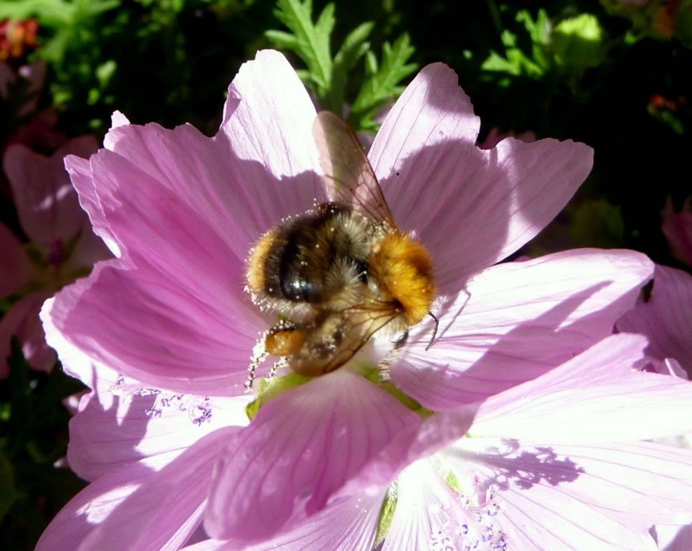 Hummel op Malve. Dat deit se vunwegen de Farv!