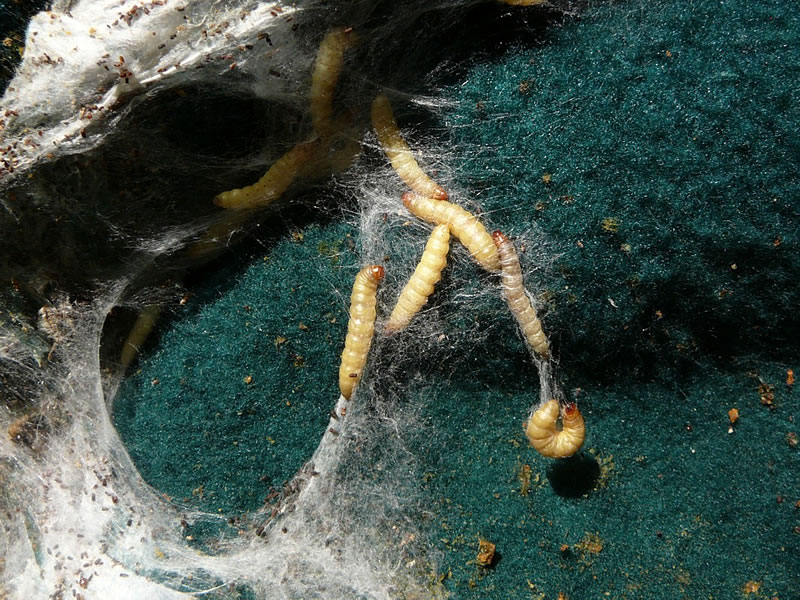 sünd Hummelwachs-mottenlarven. Se freet sik dörch de Waben