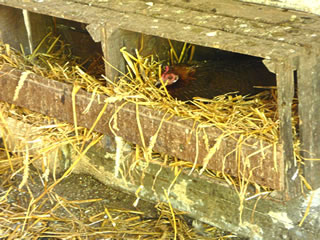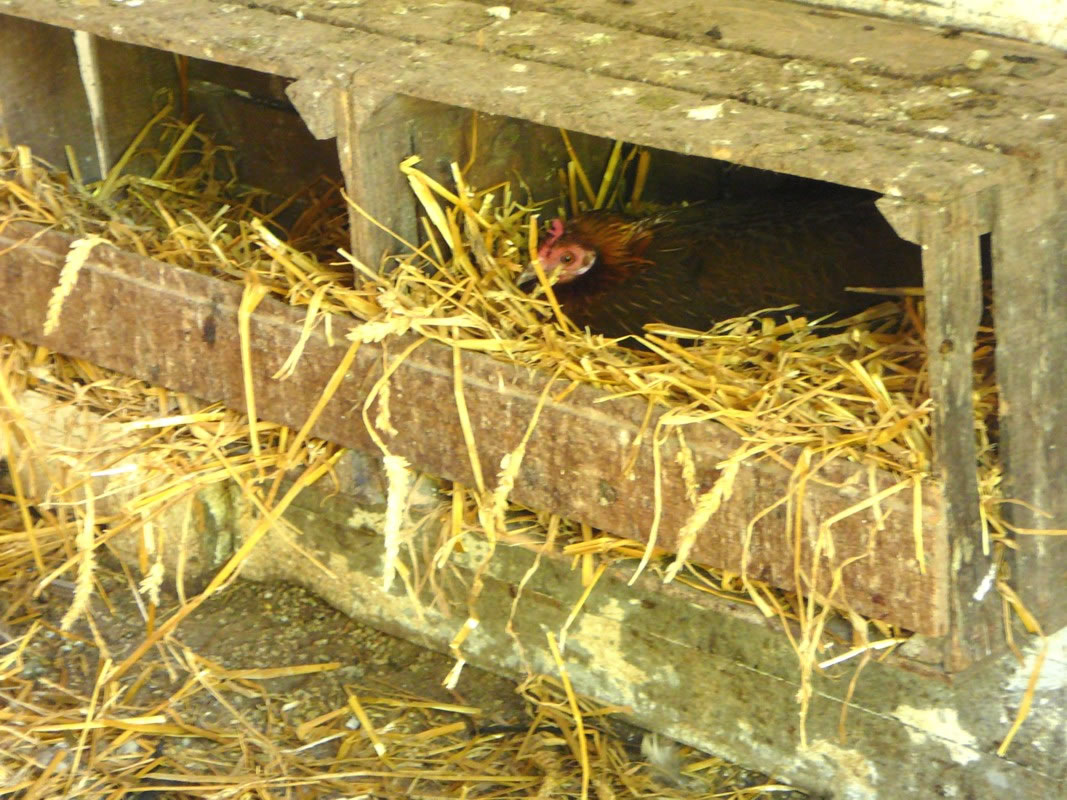För mi weer dat ümmer wedder en besünners schöön Beleevnis, warr ik doch an mien Öllernhuus un mien Kinnertiet erinnert. Wi harrn ok enen groten Höhnerhagen, enen richtigen Stall mit Höhnerlock un en Schott dorvör. Jeden Avend leet mien Vadder dat Schott hindaal. Denn weern de Höhner vör den Foss un vör den Marder seker. In den Stall weern veer Holtkisten as Nester an de Wand anbröcht. In jedeen Nest leeg en Gipsei. Dat sull de Höhner to'n Eierleggen anregen. An de Wänn weern Höhnerstangen anbröcht. Dor seten de Höhner in de Nacht un slöpen.