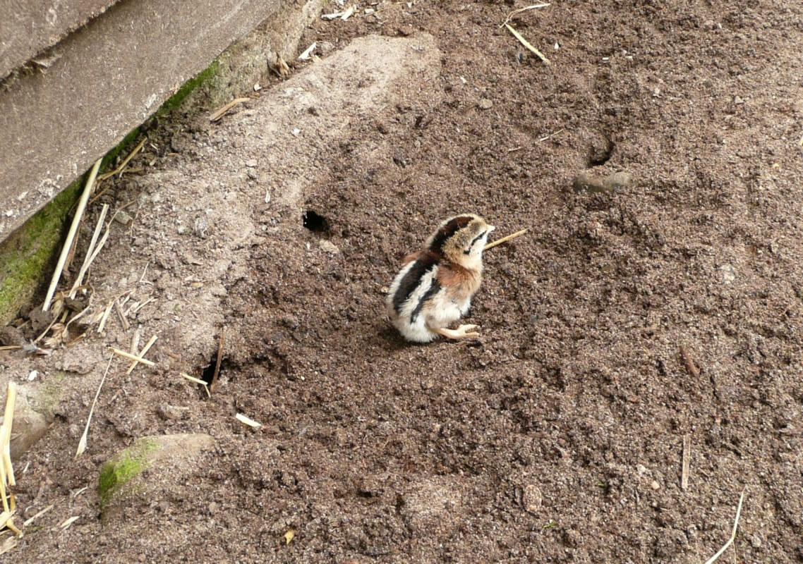 De Anroop vun den Buurn keem. De lütten "Pieles" weern utkrapen, ik sull man kamen. Utrüüst mit den Knipskassen, möök ik mi up den Weg. De Eier harr ik al vörher mal knipsen kunnt. Ok de Gluck up dat Nest heff ik fasthollen un nu kunn ik de lütten "Pieles" knipsen. De lepen alltohoop achter ehr Modder her. De scharr in den Sand na Koorns un de Hahn pass up. He kreih luut un stolt: "Kiek her, dat sünd all uns Kinner!"
