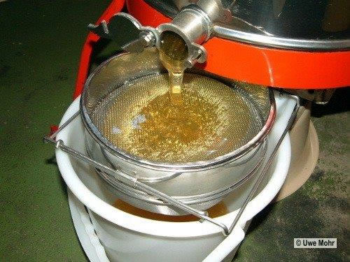 Honni löppt ut de Schleuder dörch twee Siebe.