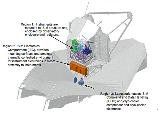 "James Webb" schall mit düt "Oog" nu nich kieken, as en Minsch kiekt, sünnern mehr in dat infrarode "Licht". Düsse Wellnlängden dringt faken ok dör interstellare Nevels dör, so dat een sehn kann, wat dorachter is. Dat Hubble-Teleskop kunn dor tomehrst nich dörkieken. För düsse Opgaav hett Jimmy Webb stückerwat Instrumente an Bord: