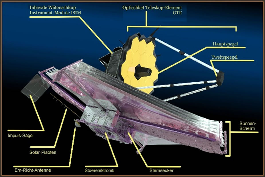 Nu is dei Speegel al utklappt un maoket sik praot för sienen Insatz. In dei taukaomen Wäken of hööchstens Maonde werd dei iersten Biller indrepen! Spannen Tieden. Hier giff et mehr: The Story of Webb | Flickr Originaol-Artikel: Webb/NASA |