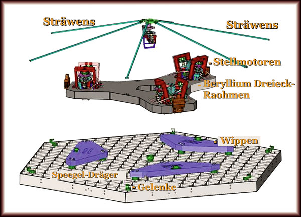 Wenn dei Sonde in den Weltruum ankaomen is, giff et ein Herutföddern: Man mutt disse Speegels sowiet henkriegen, dat sei sich pass instellt up wiet wegliggen Melkstraotens (Galaxien). Lüttke Stellmotoren sünd dat Middel. Dormit krigg man den besten Brennpunkt hen. Dei Hauptspeegel-Segmente un dei Fangspeegel werd van lüttke Stellmotoren röögt, dei an dei Achtersiete van jedet Speegeldeil sittet. Dei Hauptspeegelsegmente häbbt uck einen Stellmotor in dei Midde, dei den Speegel pass bögt. Dei Tertiärspeegel behollt dorbi seine Laoge. Hier up youtube gifft't dat in't Video!