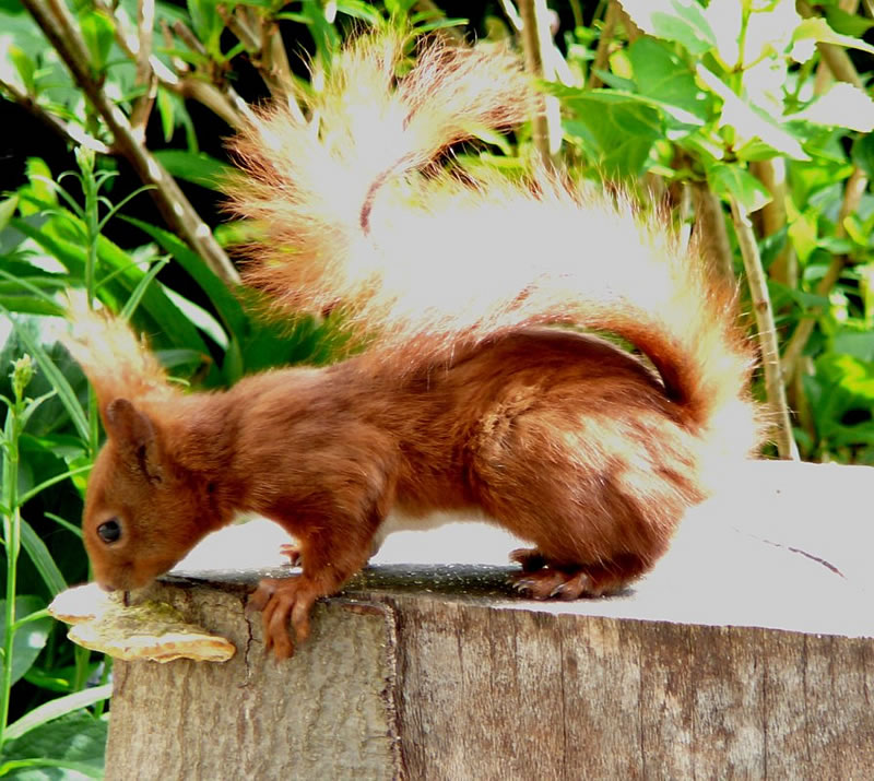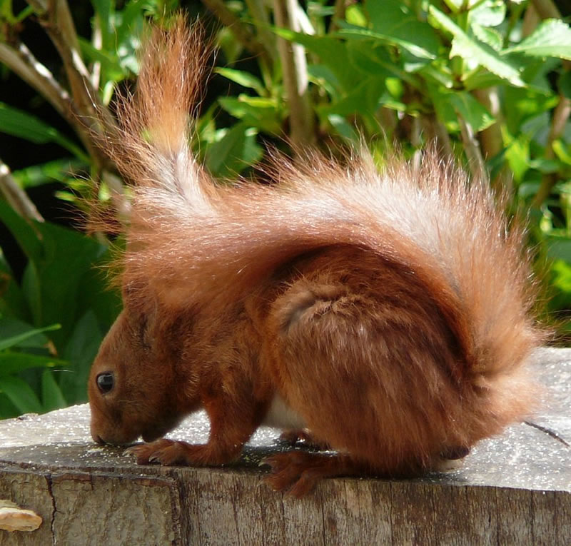 en Appelkist fien mit Zeitungspapier todeckt up de Terrass. Nu heff ik juuch minen Fründ Jan Flink vörstellt. Dat weer mi en Vergnögen! Villicht hebbt ji genau so veel Freud an em as ik. En poor Biller heff ik ok vun em maakt. Weer aver gor nich so eenfach, de Kerl is gor to gau. Mitünner harr ik blots noch den Steert up dat Bild. |