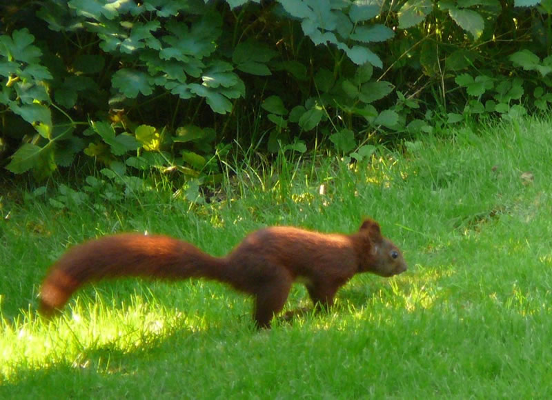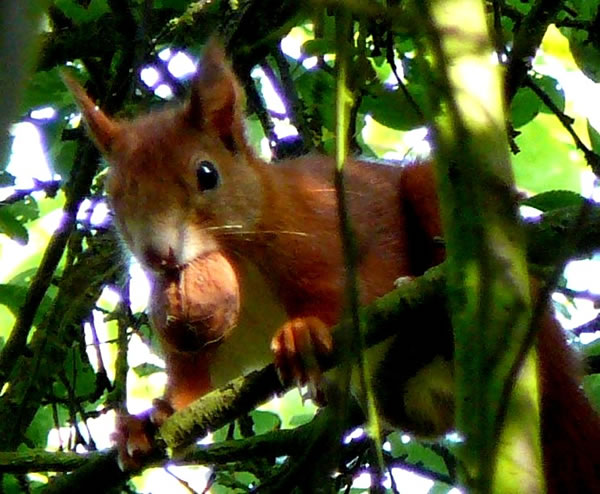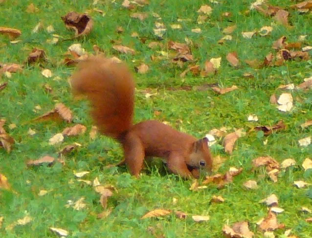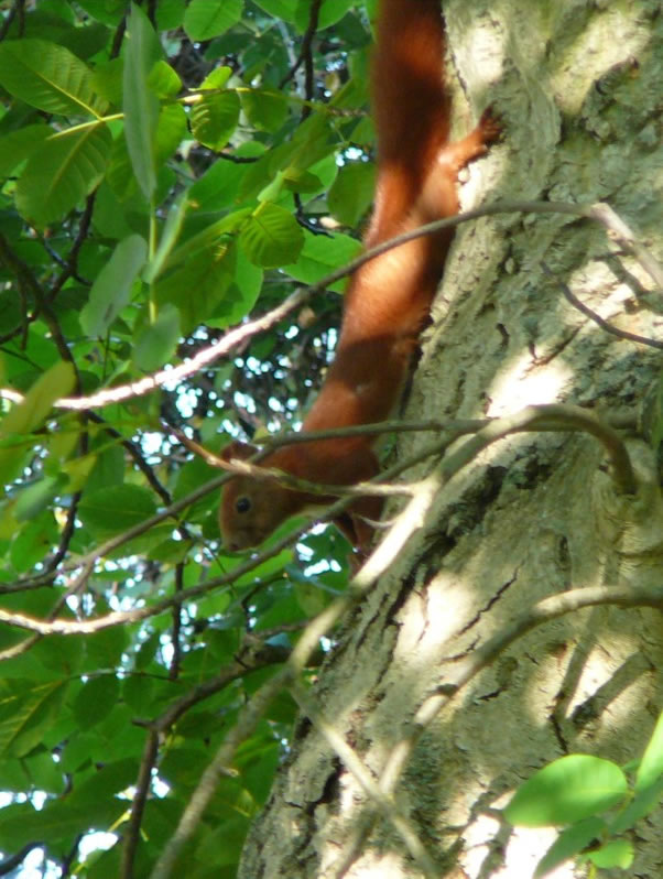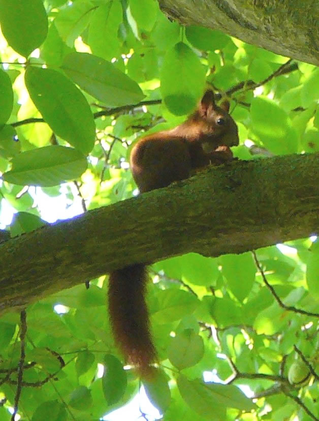 Is he denn satt, warrt Wintervörrat anleggt. Mit en Walnutt in't Muul jachtert he dörch den Goorn, kratzt gau en Lock in de Eer un versteekt de Nutt. Un denn suust he wedder na den Nuttboom un plückt de neegst Nutt. Müch mull weten, of he se all wedder findt. Ganz seker nich. Ik heff in't Johr dorna al mennigeen Walnuttboom in mien Goorn utbuddelt. Den harr ganz seker Jan Flink plant.