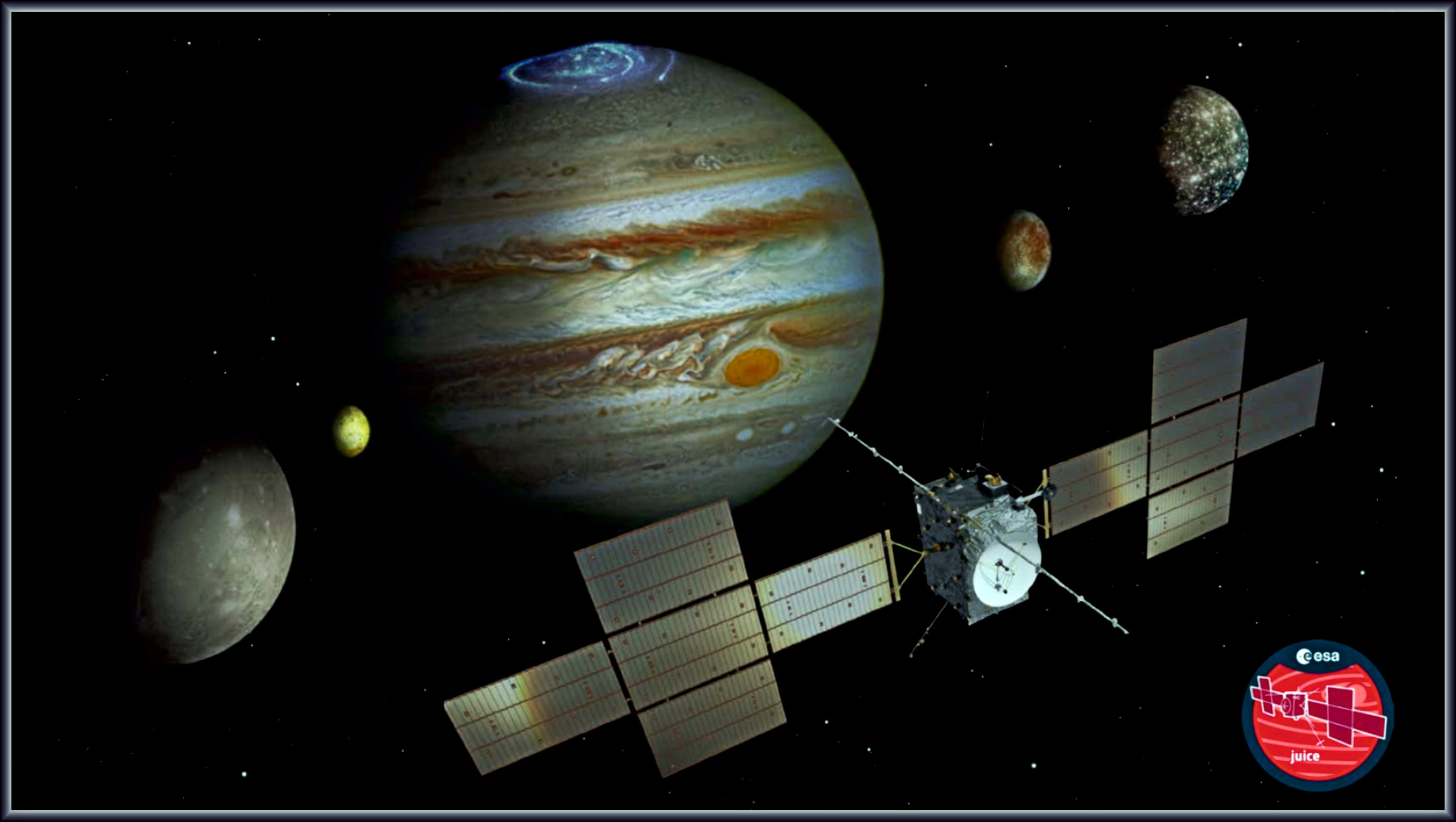 van Ludgerd Lüske All Biller köönt Se per Klick vergröttern! JUICE (Jupiter Icy Moons Explorer; äöwersettet: Jupiter-Iesmaonde-Kundschafter) is eine ESA-Jupitersonde, dei dei ESA an’n 14.April 2023 starten dö. Dei schall dei Galileischken Maonde Ganymed, Europa un Kallisto van den Planet Jupiter ünnerseuken.