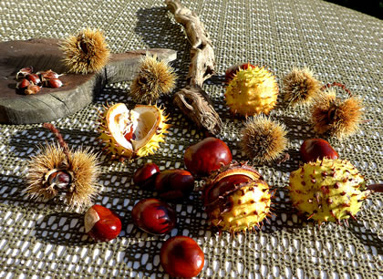 So'n blanke goldbrune Kastangel sammel ik mi ok jeedeen Johr up un steek se in de Jackentasch. Dat is denn mien Handschmeichler. Wenn man se in de Hand nimmt, beruhigt dat de Nerven un dat sall ok gegen Rheuma goot sien.