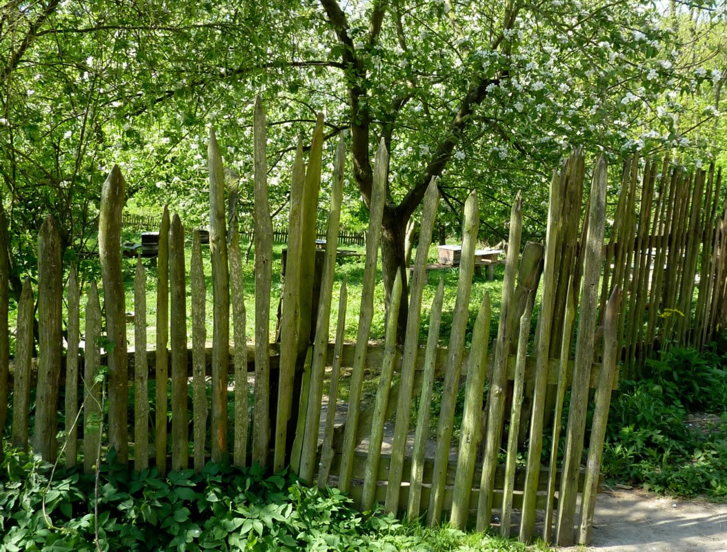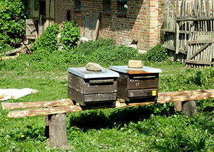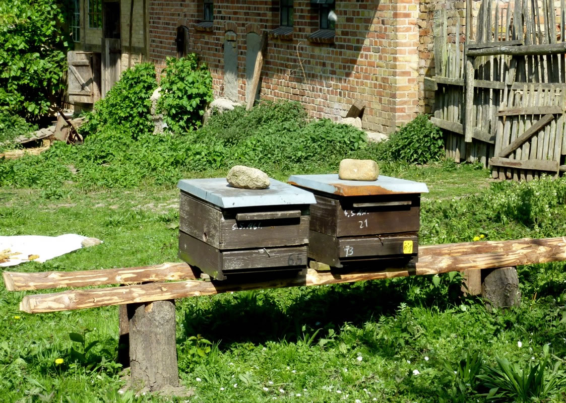 Mank de Appelbööm stünnen eenige Immenstöck. "Das