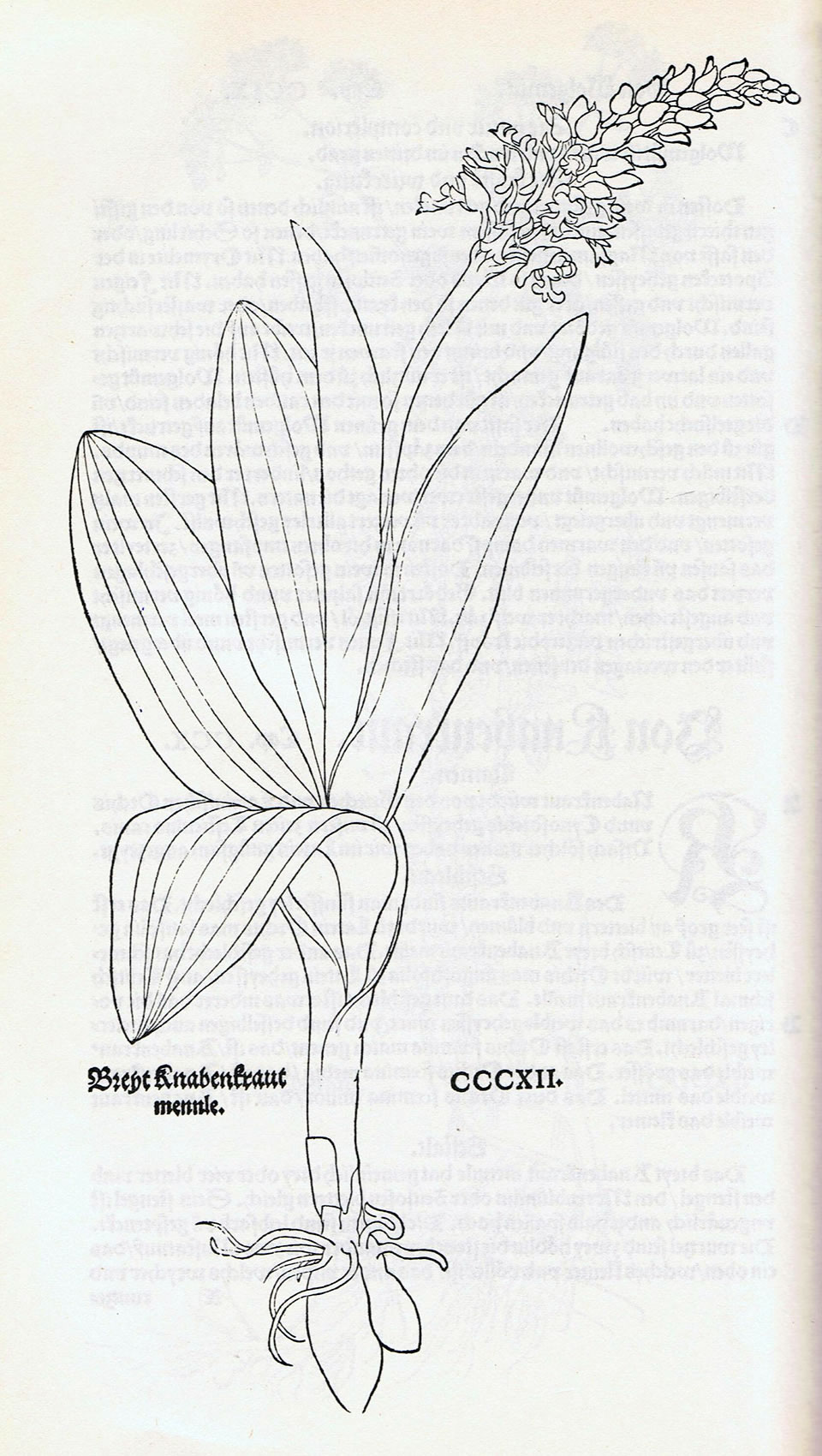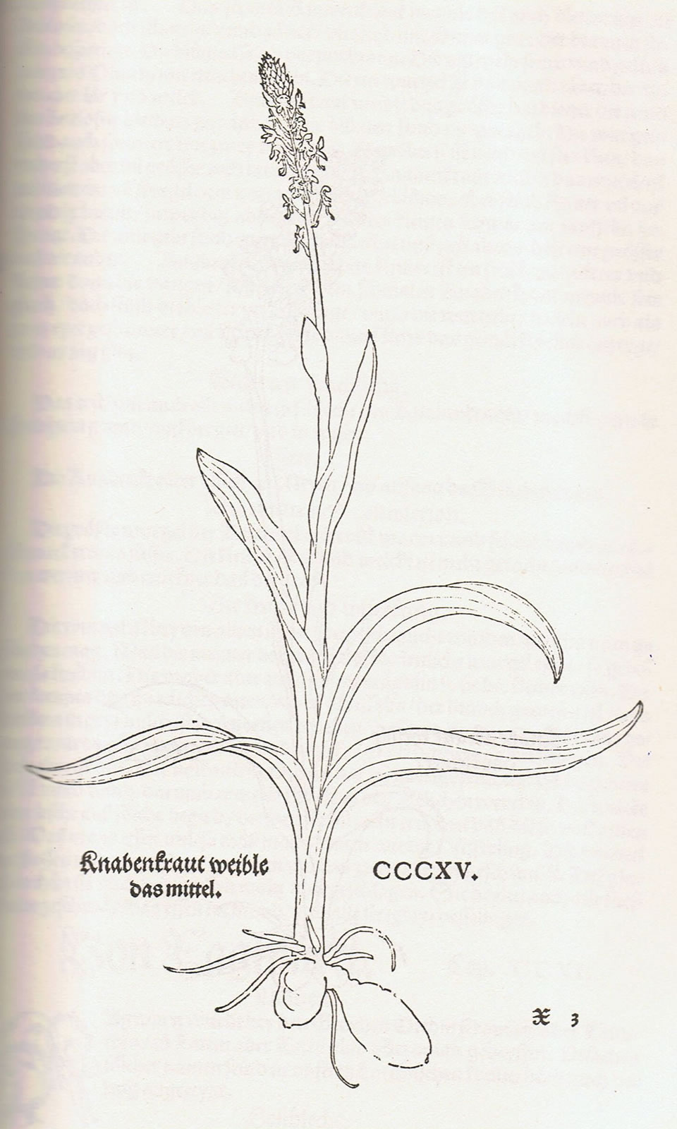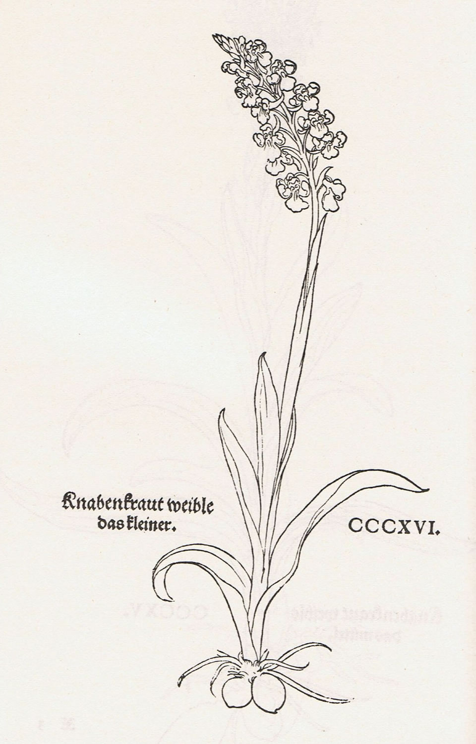 Leonhart Fuchs ünnerdeelt in sien "Kreutterbuch" vun 1543 de Knabenkrüder in männlich (mennle) un weiblich (weible):